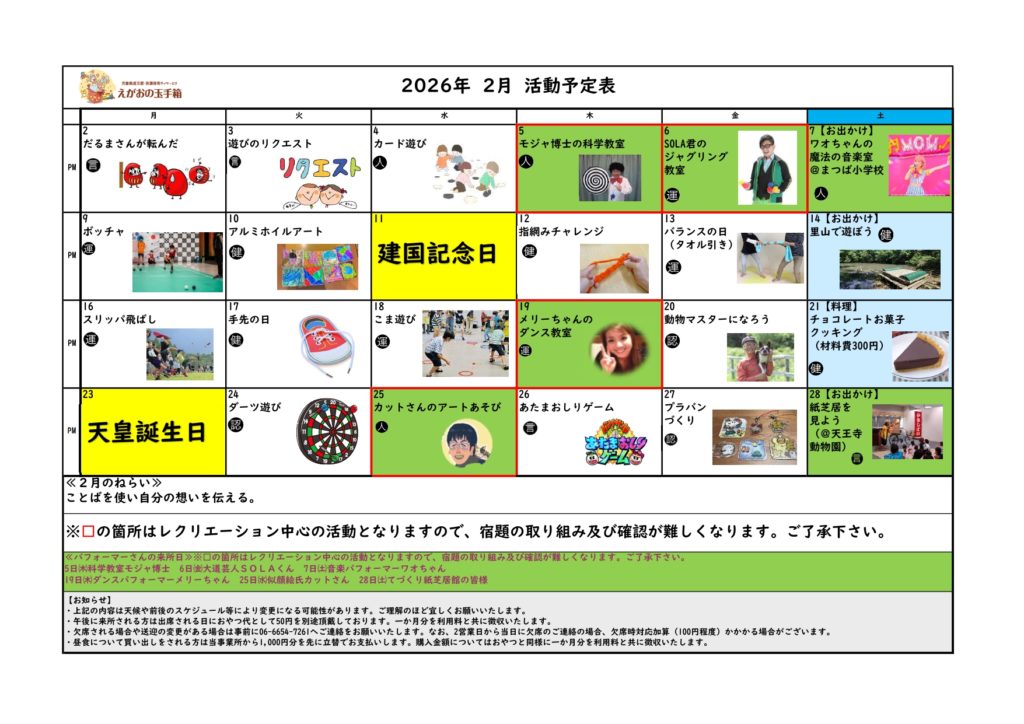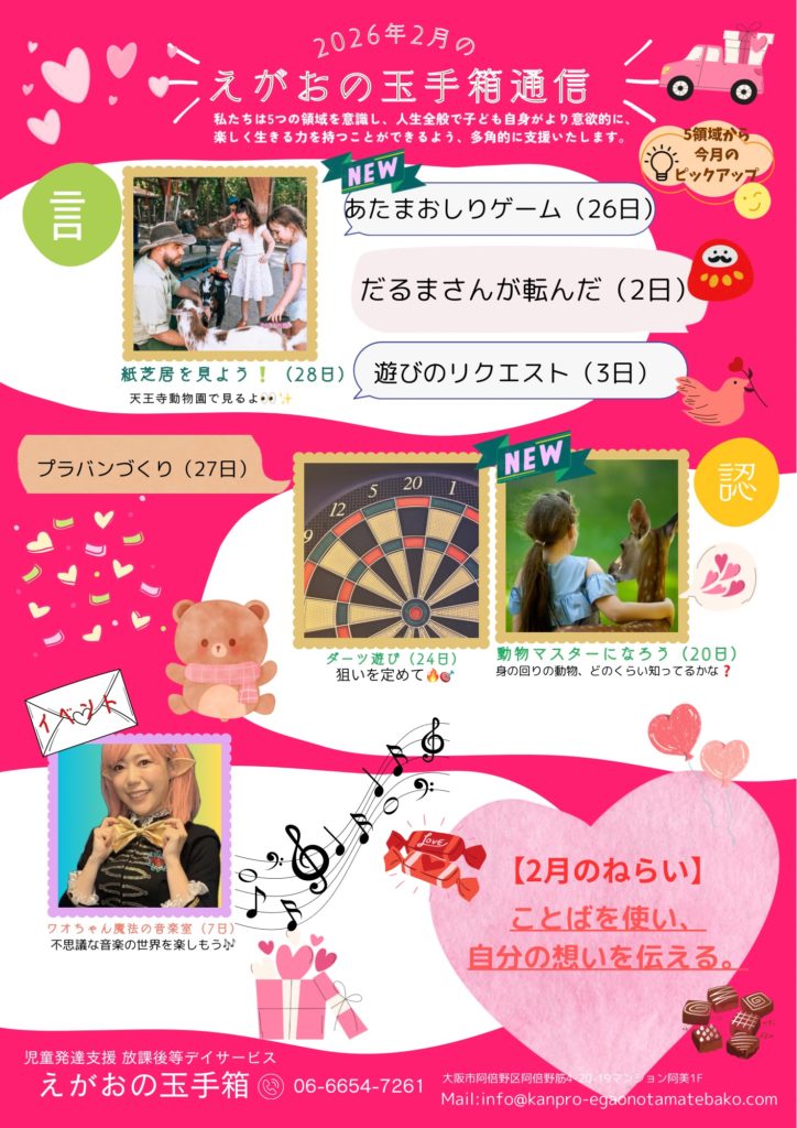 - 2026年あけましておめでとうございます!こんにちは!阿倍野区にある放課後等デイサービス・児童発達支援、えがおの玉手箱です。 いつもブログをお読みいただ… 続きを読む: 2026年あけましておめでとうございます!