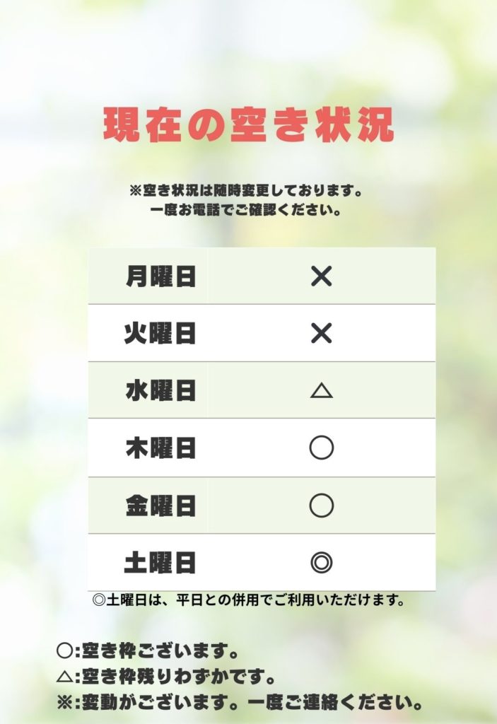 令和4年7月に開所してから三年以上が経過いたしました。有難いことに沢山のお子さんたち、そして保護者の皆様と関わり、活動させていただいております。三年を経て、卒業していったお子様もいます。少し空きがでましたのでお早めにご連絡ください。